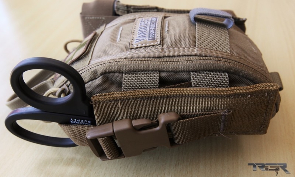 To hold our shears in a place where they could be instantly accessed, we got a Modular Scissors Pouch from Pantel Tactical. It’s Molle compatible and has a secure but fast Malice clip to hold the shears in place.
