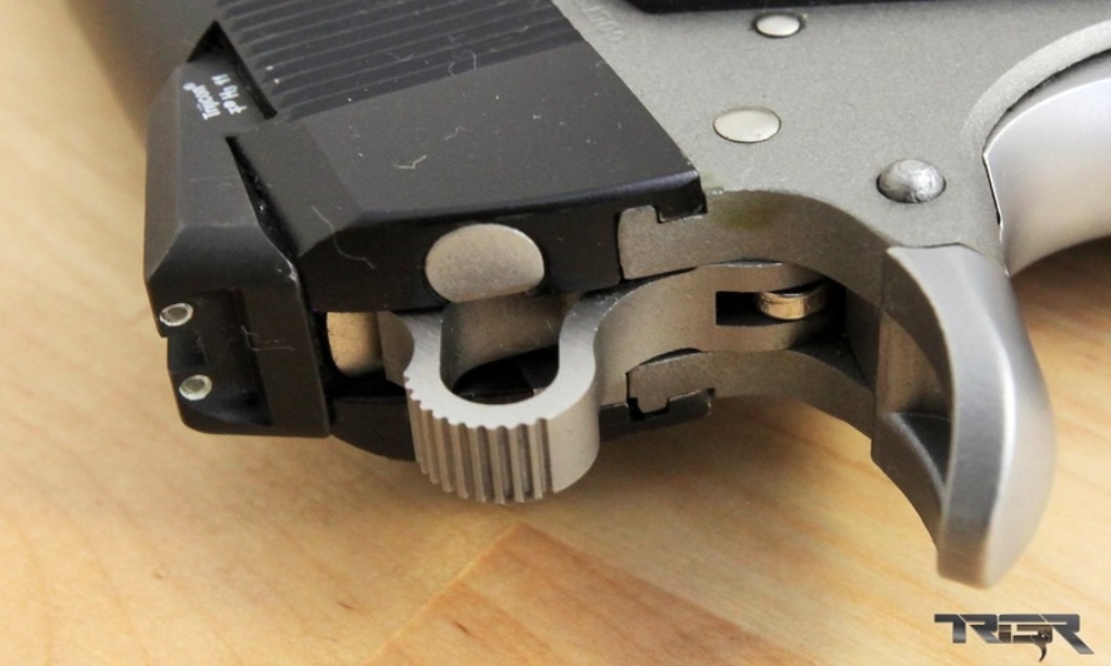 For ignition, the gun uses an Ed Brown Trigger Pull Set (hammer, sear and disconnector). A hand tensioned Wilson Combat Bullet Proof Extractor is used. All of this stuff being hand fitted. The ISMI Mainspring and Wolff Sear Spring replaced the factory parts.