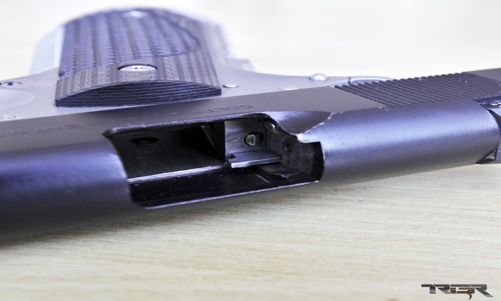 An Ed Brown Extended Ejector is used to help give a robust ejection. The ejector has a longer nose that hits the case sooner and sends it flying out the ejection port. This helps reduce stovepipes. The Ed Brown part is thicker, double instead of single staked and made of better material than stock. The ejector bending or flying out was a known problem that old 1911’s suffered from. The breech face is polished and the firing pin hole is deburred to help feeding.
